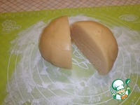 На присыпанной мукой поверхности разделить на две равные части тесто. |
