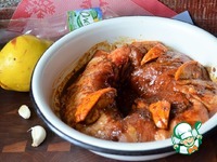 Этой смесью обмазать мясо со всех сторон, массируя. Накрыть, убрать в холодильник, от 6 часов до 2 суток, за это время несколько раз перевернуть, для лучшего маринования. |