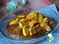 За 3-2,5 часа до подачи мясо переложить в огнеупорную форму, желательно сразу в ту, что будете подавать на стол. |