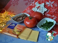 Из этого нехитрого набора продуктов мы приготовим праздничное горячее блюдо. Фарш у меня заправлен солью, перцем, луком. От размера помидоров зависит и количество других продуктов. |