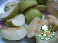 Яблоки моем и режем четвертинками, вырезая сердцевинку. |
