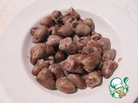 На сковороду налить 1ст. л растительного масла (я использую масло ТМ Олейна). Выложить лук и пассеровать до мягкости. Добавить сердечки и обжарить вместе с луком минут 5. |