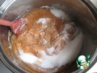 Для дальнейшего приготовления переложила массу из сотейника в кастрюлю. Добавить сахар и перемешать. |