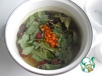 Потом добавить листья вишни, чёрной смородины и облепиху. |