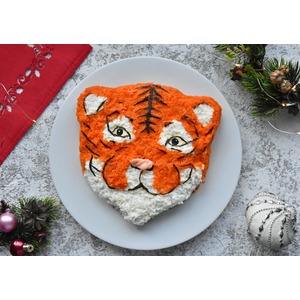 Описание: На новый год, любой салат можно оформить в виде символа животного. 2022 год, как известно, пройдет под знаком тигра. За основу я взяла салат селедка в лисьей шубке.