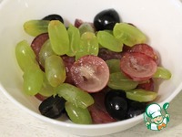 Виноград вымыть, обсушить, разрезать на половинки и убрать косточки. |