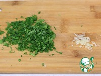 Петрушку и чеснок мелко порубить. |