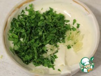 Добавить туда же петрушку и чеснок, хорошо перемешать. Заправка готова. |