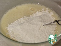 В несколько приемов всыпать муку с разрыхлителем, перемешивая до однородности. |