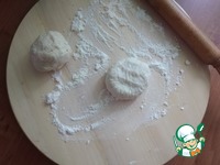 Делим тесто на 2 равные части. Каждую часть нужно тонко раскатать в круг. У меня круги получились D ~22 см. |