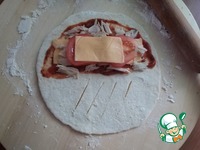 Описание: Пицца, приготовленная в виде полумесяца, в закрытой форме называется - кальцоне. Технология приготовления практически не отличается от традиционной. Исключение лишь в том, что ингредиенты начинки выкладываются лишь на одну половинку раскатанного теста. Затем накрываются оставшеюся частью, скрепляя края пиццы пальцами рук или при помощи вилки. Сегодня я сделаю по мотивам кальцоне. Сыр буду использовать бутербродный Hochland, он очень хорошо плавится и будет отлично "вести себя" в этой выпечке. Тесто сделаю быстрое бездрожжевое. Отличная выпечка на праздничные новогодние каникулы для всех любителей пиццы.