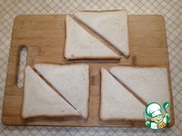 Хлеб для тостов разрезать наискосок, чтобы получились треугольники. |