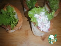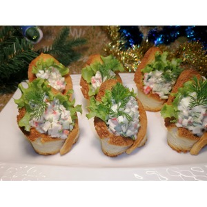 Описание: Хрустящие тарталетки с крабовыми палочками станут вкусной и нарядной закуской, которая украсит любой праздничный стол.