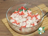 Описание: Салат из крабового мяса и печени трески идеально впишется в меню для праздников, семейного обеда и дружеской вечеринки. А чтобы вкус салата получился ещё насыщеннее, рекомендую добавить горсть молотых орехов.