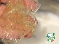 Пластинки желатина замочить в ледяной воде минут на 10. |