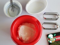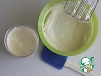 Охлажденные сливки взбить миксером и ввести в творожный слой. Набухший желатин подогреть (но не кипятить) и добавить в творожно-сливочную массу, размешать. |