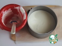 Кольцо желательно выстелить ацетатной пленкой ( или твердым файлом) заполнить творожной массой, разровнять и убрать в холодильник до охлаждения. |