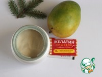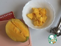Желатин заранее залить водой, дать ему набухнуть. Манго вымыть, очистить, нарезать на кусочки. |