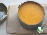 На остывший творожный слой вылить манговое пюре, разровнять и убрать в холодильник. |