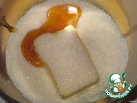 делаем банановые коржи. Бананы натереть на мелкой терке. Маргарин (комнатной температуры) взбить с медом и 150 г сахара в легкий крем. |