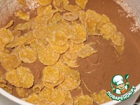 Затем на взбитые белки просеять 1,5 ст.л. какао, добавить кукурузные хлопья и аккуратно, ложкой, перемешать. |
