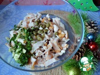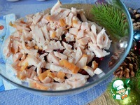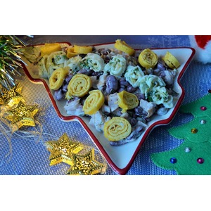 Описание: Мне кажется именно во время длительных праздничных застолий, в Новогодние дни или на Пасхальной неделе чаще рождаются новые рецепты, особенно мы придумываем салаты. Вот ещё один вариант, угощайтесь.