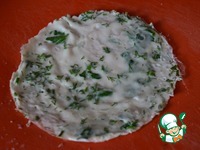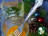 Часть зелени нарезать мелко и добавить в белки. Влить по 1 ч. л. сливок и тщательно перемешать. |