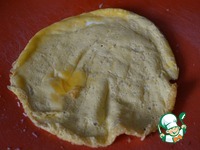 Затем также на сухой сковороде пожарить блинчик из белков. |