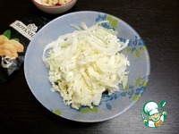 Рецепт нашла на сайте, рассказывающем о быте и кухне Японии. Любопытно, что японцы почти не едят сырую пекинскую капусту, они считают, что листики у них суховаты. Чтобы пекинка стала посочнее они её готовят на пару несколько минут или обдают кипятком.