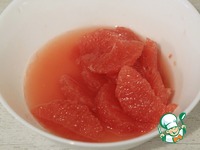 Грейпфрут очистить от кожуры и вырезать дольки мякоти от кожицы. Делайте это над миской, чтобы сок стекал в нее, он понадобится потом для заправки. |