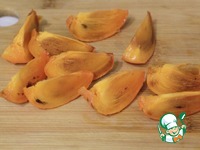 Хурму вымыть, обсушить и разрезать на дольки. |