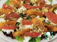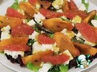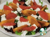 Описание: Легкий салат с нежной сладкой хурмой и солеными кубиками феты – прекрасное дополнение к бокалу вина.