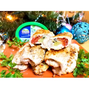 Описание: Сочные рулетики из индейки с творожным сыром, киви и помидорами! Это блюдо без сомнения достойно праздничного стола!