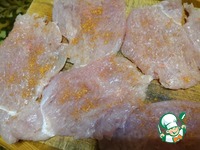 Грудку индейки нарезать на медальоны. Отбить мясо и приправить солью и специями на ваш вкус. |