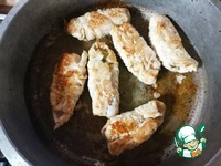 Обжарить рулетики с двух сторон по 5 минут, до слегка золотистого колера. |