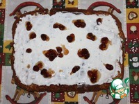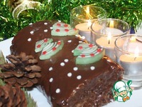 Рулету обрезаем кромки (два поперечных среза), наносим шоколадную глазурь и приклеиваем мармеладные ёлочки и "снег" из декоративной посыпки. |