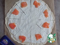Слоёное тесто немного раскатать. Вырезать круг, примерно диаметром 30 см. |