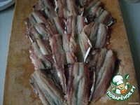 У каждой рыбки вынуть хребет и плотно выложить друг на друга в виде большой рыбы. |
