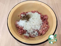 Рис (2 ст. ложки) промыть в холодной воде, отварить в подсоленной воде до состояния Al dente. В готовый фарш (свинина+говядина) добавить по вкусу соль и черный молотый перец, добавить отваренный рис. |