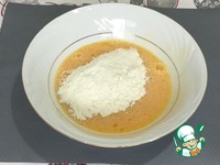 Далее добавляем разрыхлитель и муку и снова перемешиваем |