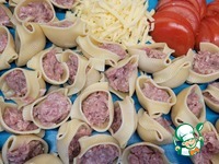 Начиняем рожки фаршем. Фарш солим и перчим по вкусу. |