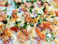 Заливаем подготовленным соусом так, чтобы все рожки были полностью покрыты соусом. |