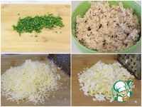 Размять тунец вилкой. Зелень мелко порубить. Можно взять смесь петрушки и укропа, а можно что-то одно. Сыр натереть на мелкой терке, яйца на крупной. |