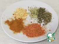Подобрать специи. Я добавляю сванскую соль, сухой чеснок, паприку и сухие пряные травы. |