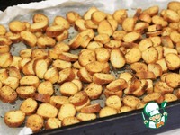 Выложить на противень и запечь в разогретой до 180°С до румяности, где-то минут 5-7. Можно перемешать пару раз. |