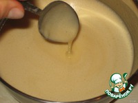 Довести смесь до однородного состояния, затем прогреть еще 5-7 мнут. Смесь увеличивается примерно в два раза, получается такая пенистая кремообразная масса. |
