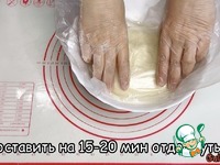 Добавляем муку и замешиваем эластичное тесто. Накрываем пакетом и даём отдохнуть 15-20 минут. |