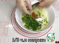 Добавляем в луку соль, перец чёрный, паприку. Все хорошо перемешиваем. |