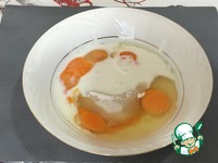 В глубокую миску вливаем яйца, сахар, ванилин и молоко. Перемешиваем до однородной массы. |