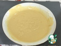 Теперь добавляем разрыхлитель и 1/3 часть муки. Тщательно перемешиваем до исчезновения комочков. |